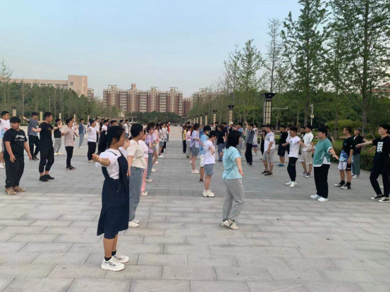为更好地开展5·25心理健康月系列活动,营造和谐发展和健康生活的良好校园氛围,suncitygroup太阳集团组建了8×8心理健康操方队在学校图书馆前广场国旗下展开训练。学院心理工作站副站长田云青、院关工委罗富坤和邱放及心理咨询部志愿者一起陪同员工训练。