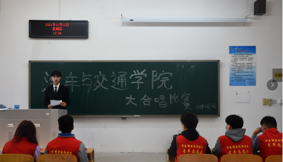 活动前期,参赛队伍由各班指挥人员带领,文体部志愿者陪同进行了为期一周的训练。文体部对后续比赛中的志愿者进行明确分工。比赛中,各参赛队伍精神饱满、演唱激情,用独具匠心的唱法、大气磅礴的歌声和旋律,展现了爱党爱国、昂扬向上的精神面貌,展现了中华民族自强不息的伟大精神和阔步向前的豪迈气概。活动中,八位评审员分赛场对参赛队伍进行严格细致的评分。最后,经过两个多小时的大合唱展示,活动圆满结束。本次比赛分赛场各自选出一等奖一个,二等奖两个,三等奖三个,其中汽车制造211班和汽车检测与维修208班分别获得2021和2020级组的冠军。