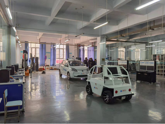 第三站考察小组来到了汽车智能网联实训室和汽车钣金喷漆实训室,查看了智能网联实训室的建设情况,并就实训室建设方面和该校教师进行了深入的探讨。
